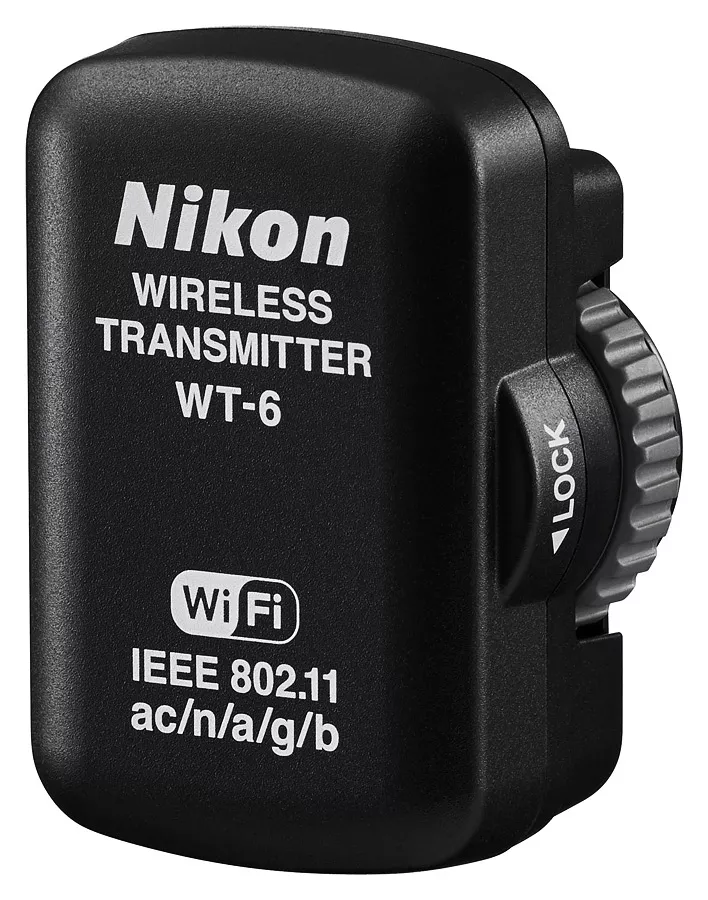 Bezdrôtový Wi-Fi vysielač Nikon WT-6 sa pripája do konektora rozhrania fotoaparátu a je ním aj priamo napájaný z tela fotoaparátu Nikon D5 a D6. Je vybavený režimami pripojenia HTTP, FTP a umožňuje súčasnú aktiváciu spúšte viacerých fotoaparátov vybavených bezdrôtovým Wi-Fi vysielačom WT-6. Prostredníctvom tohto bezdrôtového vysielača je možné na diaľku pomocou počítača a nainštalovaného softvéru Nikon Camera Control Pro 2 ovládať nastavenia fotoaparátu Nikon D5 a D6, jeho Live View výstup.