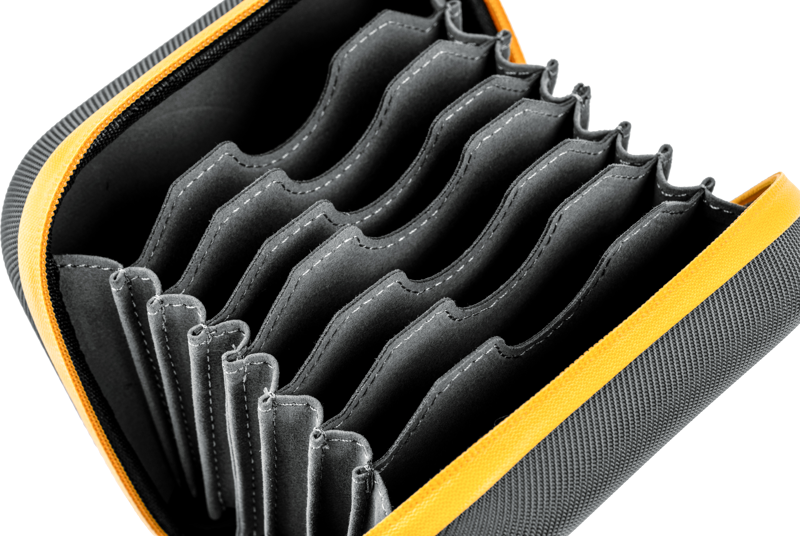 Má hladký zips a 8 samostatných vreciek, ktoré chránia vaše filtre a umožňujú ľahký prístup ku všetkým vašim filtrom.