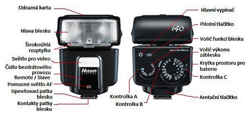 Nissin i40 je praktický, mimoriadne kompaktný a výborne vybavený systémový blesk novej koncepcie určený pre digitálne jednooké zrkadlovky. Vyznačuje sa svojou všestrannosťou, kompaktnosťou, hmotnosťou iba 203g, TTL meraním, wireles TTL podporov, vysokorýchlostnou synchronizáciou s uzávierkou až do 1/8000s, smerným číslom 40, video svetlom, jednoduchým ovládaním, rýchlym a tichým dobíjaním a praktickou otočnou/výklopnou zoomovacou zábleskovou hlavicou s rozptylkou a odrazkou. Pre zabezpečenie dokonalej kompatibility je blesk vybavený systémom vlastnej kalibrácie TTL merania. Je možné ho používať rovnako pripojený na Hot-Shoe pätici fotoaparátov Nikon ako aj voľne umiestnený do priestoru a spúšťaný na diaľku v TTL režime ako podriadenú zábleskovú jednotku. Tento šikovný univerzálny blesk v spolupráci s ostatnými bleskami v skupine, rozšíri vaše možnosti v oblasti kreatívneho nasvietenia fotografovanej scény. Vyniká výborným smerným číslom 40 (pri ISO100, 105) a 27 (pri ISO 100, 35mm) a zoom hlavou pre pokrytie ohniskových vzdialeností v rozsahu od 24-105mm. Pri použití vstavanej rozptylky je možné fotografovať už od ohniskovej vzdialenosti 16mm. Blesk ponúka na výber pokrytie až 6tich rôznych prednastavených ohniskových vzdialeností (16mm, 24mm, 50mm, 80mm, 105mm).
