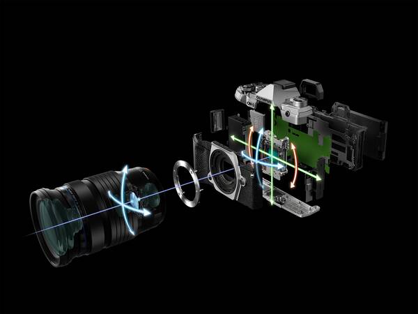 Umožňuje docieliť vysokej miery stabilizácie obrazu v takto kompaktnom a ľahkom tele. Na základe informácií o otrasoch fotoaparátu, získavaných z vysoko presného gyroskopického senzoru, a na základe analýzy obrazu ovláda obrazový procesor TruePic VIII jednotku stabilizácie obrazu (IS) tak, aby bolo možné predĺžiť expozíciu až o 5,5 kroku.Keďže je IS systém zabudovaný v tele OM-D E-M5 Mark III, funguje stabilizácia obrazu s každým nasadeným objektívom. Okrem rozostrenie spôsobeného pohybom v pozdĺžnej a zvislej osi je kompenzovaný aj pohyb v osi objektívu. Systém tak zaisťuje optimálnu podporu pre fotografovanie z ruky.