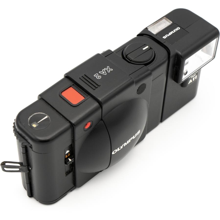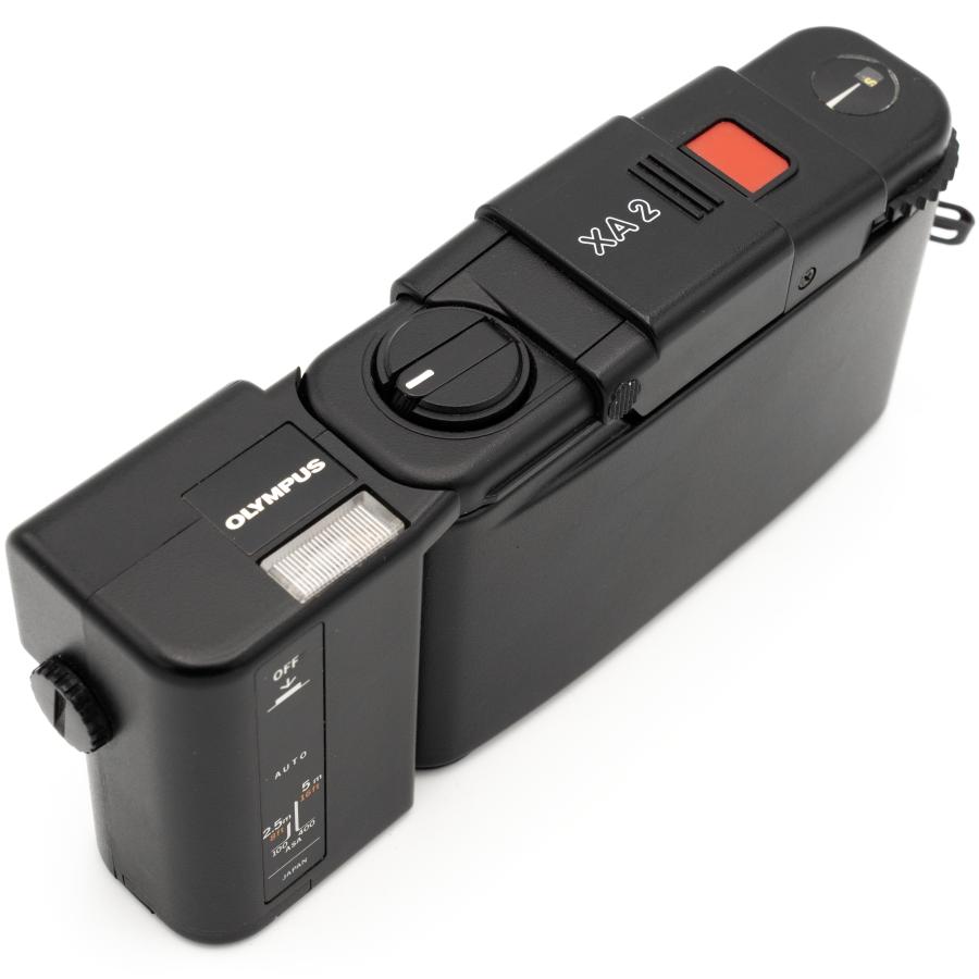 Automatický mimoriadne kompaktný fotoaparát na kinofilm s manuálnym navíjaním filmu, automatickým bleskom, zónovým ostrením, autoexpozíciou a kvalitným pevným objektívom 35mm f/3.5. Blesk A11 je odnímateľný, čím sa Olympus XA stáva jedným z najmenších kinofilmových aparátov na svete.