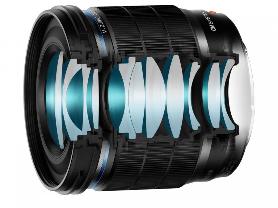 Vynikajúce rozlíšenie typické pre objektívy M.Zuiko PRO: Objektív je zložený z 11 členov poskladaných v 10 skupinách. Obsahuje Super ED, ED, Super HR a asférické optické členy efektívne usporiadané pre čo najostrejšie zobrazenie od stredu až po okraje záberu. Tento objektív s vysokým rozlíšením maximálne využíva výkon fotoaparátu, vrátane vysokej kvality obrazu získanej pri fotografovaní v režime High Res Shot. Aj tu je použitá povrchová úprava ZERO spolu s optimálnym potlačením vnútorných odrazov v tele objektívu, aby sa zamedzilo vzniku odleskov.