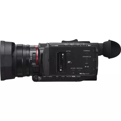Výstupný port HDMI prenáša video v rozlíšení UHD 4K na vybraný zdroj. Nahrávajte priamo na dve karty SD súčasne vo formátoch MOV/MP4. Integrovaný stereofónny mikrofón zachytáva 48 kHz 16-bitový zvuk vo formátoch AVCHD/MP4 a 48 kHz 24-bitový zvuk vo formátoch MOV. Pridajte vlastný mikrofón pomocou 3,5 mm stereofónneho mini konektora alebo 3-pinového vstupu XLR s podporou fantómového napájania a monitorujte celkový zvuk prostredníctvom konektora pre slúchadlá. Súčasťou je aj ďalší zvukový výstup pre reproduktor. Kameru môžete diaľkovo ovládať prostredníctvom 2,5 mm mini jack konektora.