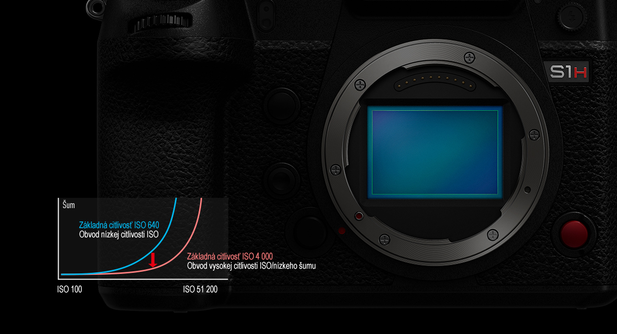 Novovyvinutý 24,2-megapixlový Full-Frame snímač CMOS fotoaparátu LUMIX S1H obsahuje technológiu duálnej natívnej citlivosti ISO. Obrazový snímač dokáže využívať duálne nastavenie citlivosti ISO, výsledkom čoho je minimálny šum a vynikajúca kvalita obrazu od nízkej po vysokú citlivosť. Táto funkcia spoločne s procesorom Venus Engine poskytujú maximálnu citlivosť ISO 51 200/rozšírenú citlivosť ISO 204 800 na dosiahnutie minimálneho šumu pri vysokej citlivosti a nádherného vyjadrenia tmavých oblastí v zábere. Antialiasingový filter navyše efektívne minimalizuje moiré. Fotoaparát LUMIX S1H je pripravený na akciu, kedykoľvek sa vyžaduje profesionálne snímanie pri slabom svetle.