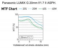 Objektív Panasonic Lumix G 20mm f/1.7 II ASPH. predstavuje výsledok snahy priniesť za pomoci najmodernejších technológií a vývoja čo najvyššiu obrazovú kvalitu užívateľom systému Micro FourThird (M4/3). Objektív je už druhou generáciou obľúbeného vysoko svetelného reportážneho Pancake objektívu rady Lumix G. Ohnisková vzdialenosť objektívu je 40mm (ekvivalent u 35mm fotoaparátu) a svetelnosť objektívu je f/1.7. Vďaka takto vysokej svetelnosti Vám umožní tento objektív veľmi ľahko „odpichnúť“ objekt záujmu od jeho pozadia a vytvárať tak úchvatné a čisté zábery. Tento univerzálny objektív skvele poslúži na fotografovanie krajinárskych, reportážnych záberov, alebo rôznych detailov či portréty. Optická sústava pozostáva zo 7-mich šošoviek zoradených do 5-tich skupín. Je vybavená dvoma špeciálne asféricky tvarovanými šošovkami, ktoré sa starajú o dokonalé prekreslenie detailov po celej ploche záberu od stredu až do rohov a minimalizovanie optických chýb objektívu. Objektív je vybavený presným zaostrovacím motorčekom, ktorý v spolupráci s automatickým zaostrovacím systémom na základe detekcie kontrastu umožňuje presne a rýchlo zaostrovať. Môžete použiť aj funkciu pokročilého automatického zaostrovania podľa kontrastu, ktorá zahŕňa funkciu rozpoznávania tvárí a ponúka viac radosti a pohodlia pri fotografovaní. Predný člen objektívu sa pri zaostrovaní neotáča, čo uľahčuje použitie prechodových a polarizačných filtrov. Najkratšia vzdialenosť zaostrenia objektívu je 20cm a umožňuje vyfotografovať atraktívne detailné fotografie menších objektov. Priemer filtrového závitu je 46mm. Sedem lamelová kruhová clona umožňuje vytvorenie okrúhleho otvoru clony, ktorý pri nastavení nižších clonových čísiel prispieva k atraktívnemu rozostreniu oblasti mimo roviny ostrenia - bokehu.