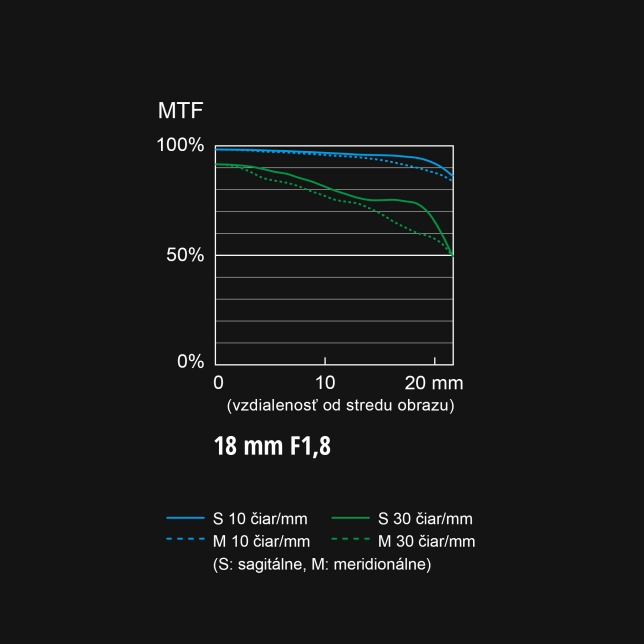 V prípade objektívov, ktoré dokážu kompenzovať skreslenie, vyjadruje vodorovná os vzdialenosť od stredu korigovaného obrazu.