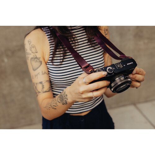 - Kĺže po oblečení: Popruh Peak Design Leash™ je vyrobený jemným úpletom z materiálu podobného bezpečnostnému pásu v aute, ktorý ľahko kĺže po oblečení a umožňuje rýchly prístup k fotoaparátu a celodenný komfort i s ťažšími fotoaparátmi.