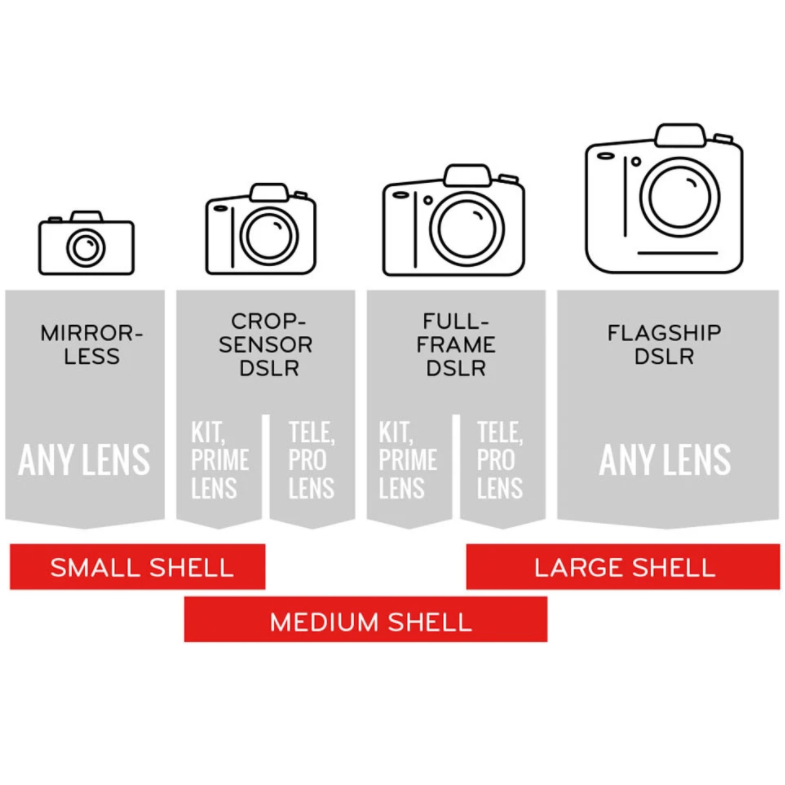 Peak Design Shell™ Medium je stredne veľká, veľmi šikovná a praktická pláštenka do dažďa pre fotoaparát s nasadeným objektívom slúžiaca zároveň ako ochranné puzdro pre prenášanie v útrobách batohu. Pláštenka chráni fotoaparát proti vode, snehu, prachu a poškriabaniu, či už máte fotoaparát v ruke, na statíve, na batohu, alebo vo vnútri brašny. Vďaka veľmi premyslenému strihu a unikátnemu dizajnu je pláštenka Peak Design Shell™ Medium nielen veľmi praktická na použitie, ale aj veľmi elegantná. Precízne bol vybraný aj vonkajší materiál – neoprén, ktorý svojou vodeodolnosťou spĺňa všetky nároky pre ochranu fototechniky v daždi. Neoprén je navyše veľmi elastický a v kombinácii s premysleným strihom tesne obopína fotoaparát aj s nasadeným objektívom a tak nedochádza k zbytočnému zväčšovaniu objemu či ovplyvneniu funkcií. Švy spájajúce jednotlivé kusy neoprénu sú na exponovaných miestach podlepené takže nehrozí že by tam mohlo dôjsť k presiaknutiu vody. Pláštenka samozrejme nie je určená k potápaniu sa pod vodou! Ak spolu s Peak Design Shell™ Medium použijete aj sponu Peak Design Capture® Camera Clip, alebo ľubovoľný popruh Peak Design, môžete mať fotoaparát po ruke v akomkoľvek prostredí.