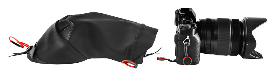 - Bezpečný: Utiahnutím sťahovacích popruhov na pláštenke Peak Design Shell™ Medium ju úplne uzavriete. Fotoaparát je potom možné uložiť aj medzi tvrdé/ostré predmety a pláštenka ho bude chrániť ako ochranný obal pred poškriabaním.