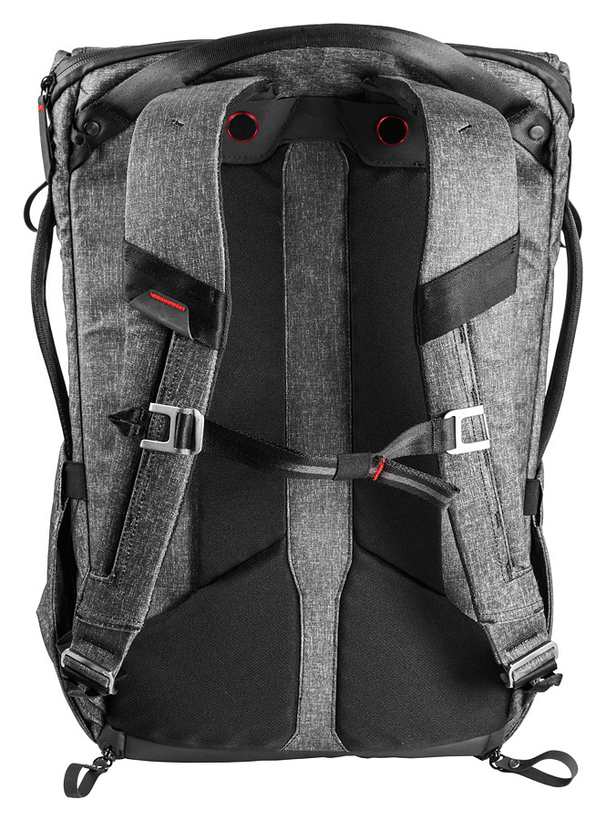 Peak Design The Everyday Backpack 20L je veľmi praktický a elegantný prémiový batoh pre fotografov, cestovateľov, do práce a všetko medzi tým. Konštrukcia batohu je v porovnaní s konkurenčnými batohmi riešená veľmi originálne a pokrokovo s maximálnym ohľadom na prácu fotografa a jeho potreby. Batoh má bezpečné patentované zatváranie veka pomocou zámku MagLatch™, ktorý sa dá nastaviť v 4 polohách a reguluje sa ním objem batohu. Peak Design The Everyday Backpack 20L môže zväčšiť, alebo zmenšiť svoj vnútorný objem v rozsahu od 12l po 20l tak, aby sa do neho zmestilo všetko potrebné vybavenie. K praktickosti batohu prispievajú tri flexibilne tvarovateľné priehradky FlexFold™ inšpirované Origami. Do batohu sa pohodlne zmestí jedna Profi Full Frame DSLR, 3-6 objektívov, 15“ notebook, 10“ tablet a osobné veci. Z vonkajšej strany batoha sú dve praktické vrecká napr. na fľašu a z boku na batoh môžete upnúť statív. Vonkajší oteruvzdorný materiál je odolný voči vplyvom počasia a na exponovaných miestach je batoh zosilnený krycou gumotextíliou. Všetky zipsy batohu sú robustné a vodeodolné čo zvyšuje jeho mechanickú odolnosť a odolnosť voči vplyvom počasia. Batoh má vyhradené miesto pre pripnutie spony Peak Design Capture® Camera Clip a panel s prístupom spredu. Peak Design The Everyday Backpack 20L je vybavený dvomi pohodlnými širokými a dĺžkovo nastaviteľnými popruhmi s integrovaným polstrovaním a výškovo nastaviteľným kompresným hrudným popruhom medzi nimi.