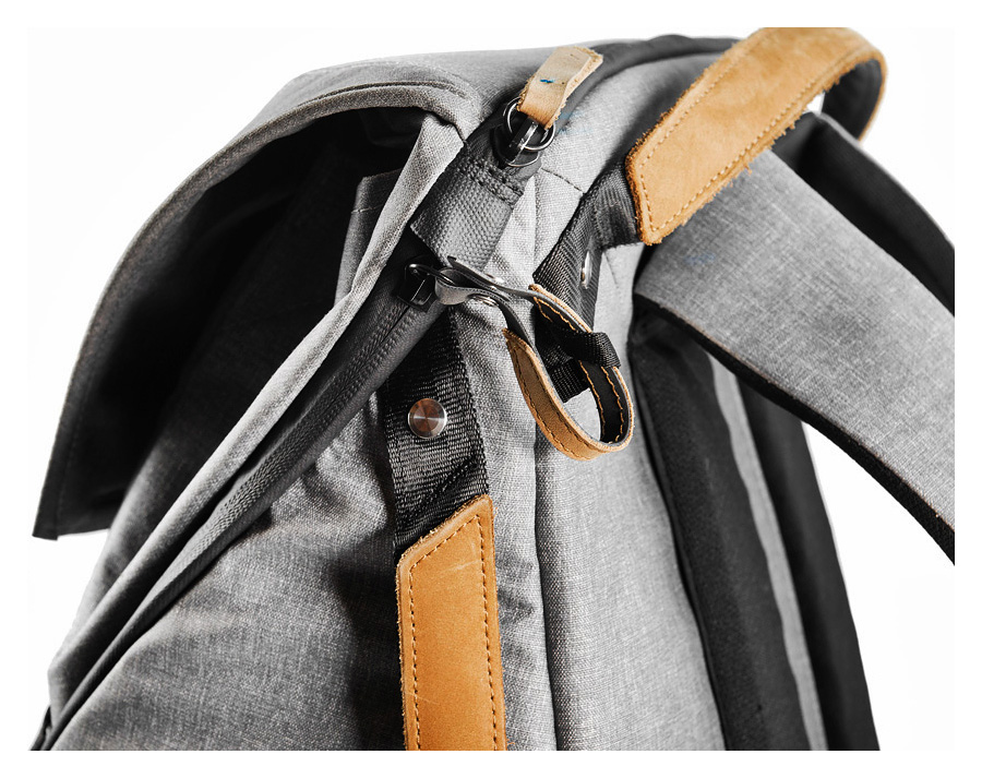 - Pripevnenie k batožine: Pre jednoduchší pohyb po letisku je možné batoh Peak Design The Everyday Backpack 20L veľmi jednoducho pomocou hornej rukoväti pripevniť k väčšej batožine a kolieskovým kufrom s teleskopickými rukoväťami.