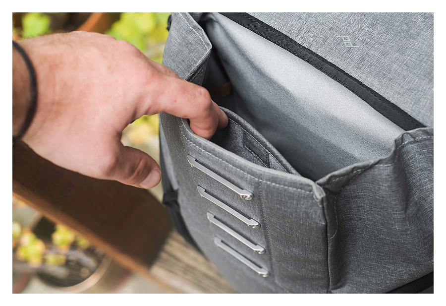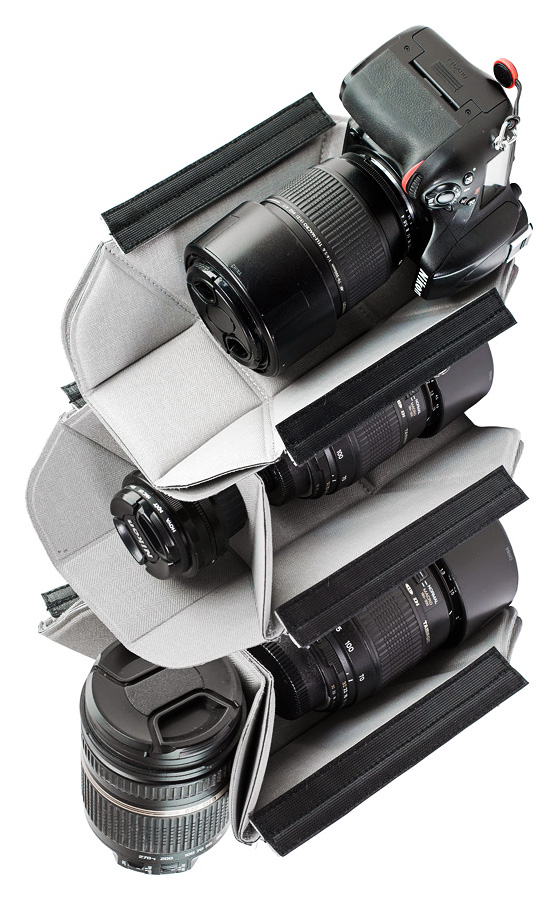 - Priehradky Flex-Fold™: Vnútorný priestor brašny je rozdelený trojicou vysoko variabilných vyberateľných priehradiek, ktoré sú inšpirované Origami a eliminujú nevyužitý vnútorný priestor.