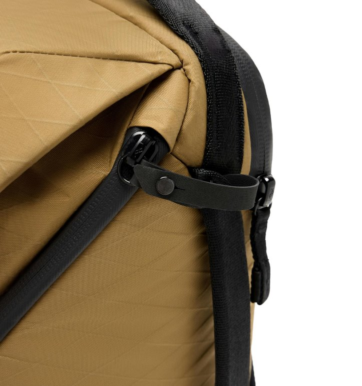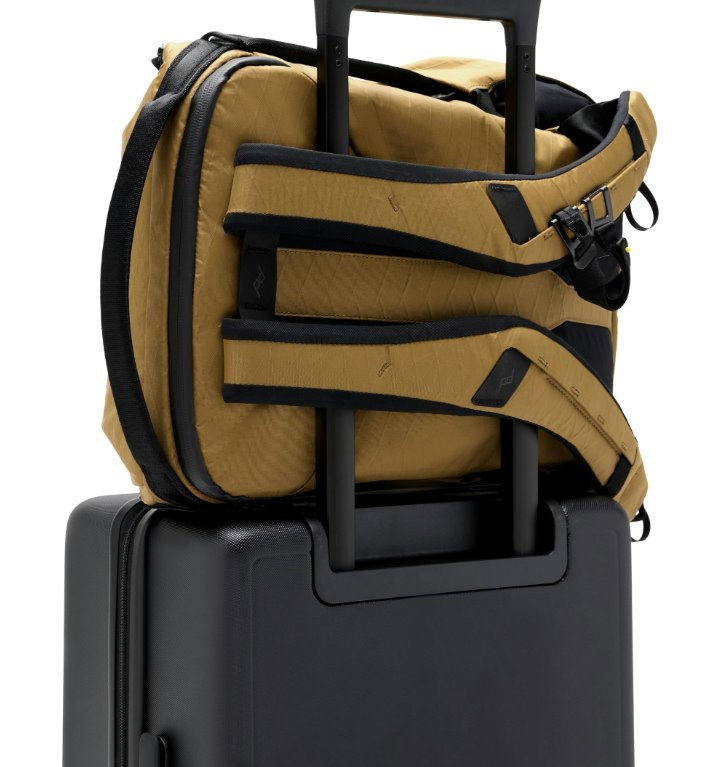 - Pripevnenie k batožine: Pre jednoduchší pohyb po letisku je možné batoh Peak Design The Everyday Backpack 20L v2 veľmi jednoducho pomocou hornej rukoväti pripevniť k väčšej batožine a kolieskovým kufrom s teleskopickými rukoväťami.