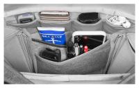 - Priehradky Flex-Fold™: Vnútorný priestor tašky je rozdelený dvomi vysoko variabilnými vyberateľnými priehradkami, ktoré sú inšpirované Origami a eliminujú nevyužitý vnútorný priestor.
