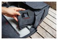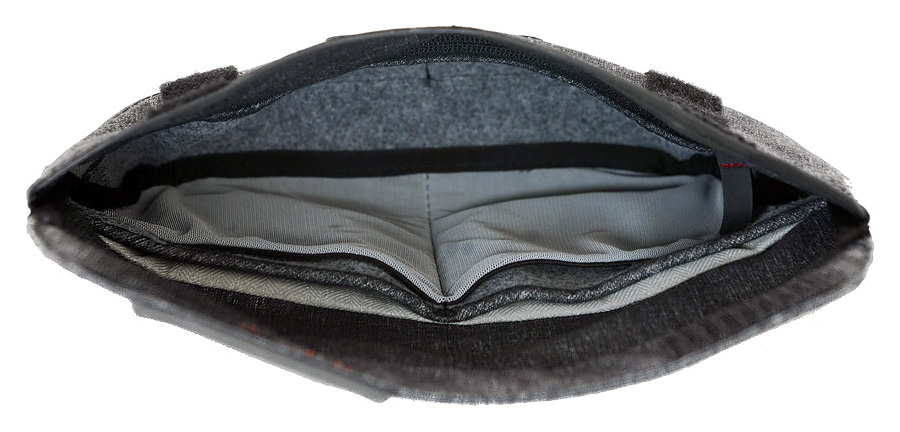 - Vode odolný povrch vonkajšieho materiálu: Ako vonkajší materiál puzdra bola zvolená vplyvom počasia odolná voskovaná tkanina Kodra 500D s DWR úpravou (impregnácia). Zatváranie preložením zabraňuje vnikaniu prachu a vlhkosti.