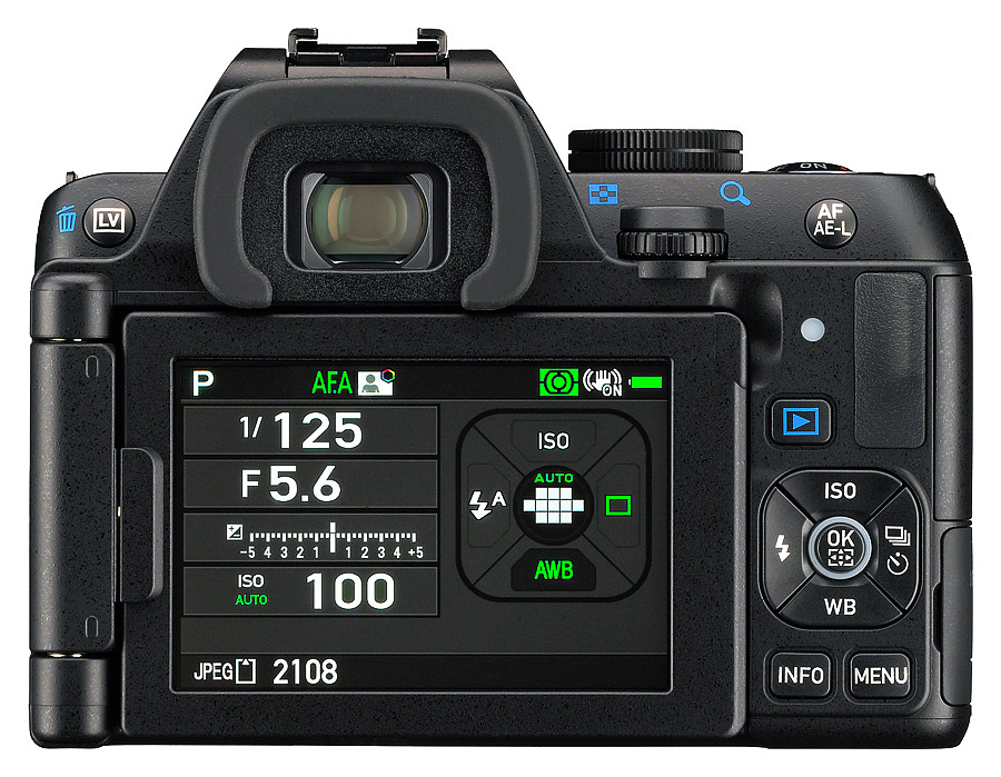 Zadnej strane fotoaparátu dominuje veľký 3“ výklopný LCD monitor s rozlíšením 921 000 Pix vybavený anti-reflexnou vrstvou s širokými pozorovacími uhlami. Výklopný displej vám poskytne nové kreatívne možnosti pri fotografovaní z nezvyklých pozícií a uhlov pohľadu.