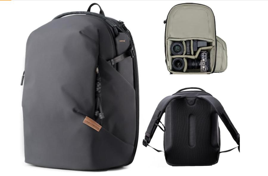 Veľký otvor na zadnom paneli a úložný priestor s jemnými prepážkami uľahčujú organizáciu. Vnútorné členenie s polstrovanou spodnou priehradkou chráni fotoaparát aj príslušenstvo. Spodnú aj hornú priehradku je možné odopnúť. Ramenné popruhy sú širšie ako pri predchádzajúcej verzii, zadný panel je navyše priedušný. Tkanina odolá striekajúcej vode a horná tkaná rukoväť sa pohodlne drží. Samostatné vrecko na batérie a bočné vrecko na fľašu umožňujú uložiť aj statív. Štandardný popruh v spodnej časti pojme statív alebo inú výbavu. K celkovému komfortu prispievajú kvalitné zipsy YKK a skryté vrecko na AirTag s GPS lokalizáciou.
