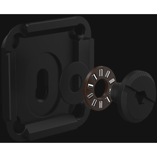 Patentovaná, pevne priliehajúca 1/4"-20 skrutka kamery bola navrhnutá tak, aby platňa zostala bezpečne pripevnená, a pogumovaná základňa zabraňuje skrúteniu kamery a poškodeniu povrchovej úpravy kamery.