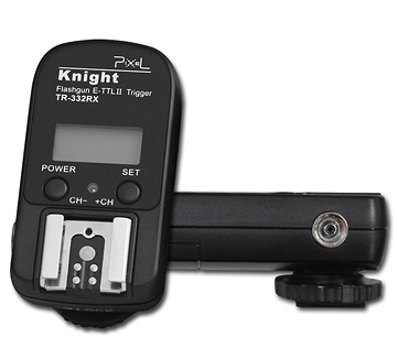 Rádiový odpaľovač (prijímač) Pixel Knight TR-322RX pre fotoaparáty Canon. Podporuje meranie E-TTL II. Vysielač aj prijímač obsahujú LCD displej s ochrannou vrstvou proti poškriabaniu zobrazujúci zvolený kanál, stav batérie a nastavený mód. Synchronizácia až do rýchlosti uzávierky 1/8000s. Možno použiť aj na odpaľovanie štúdiových bleskov.