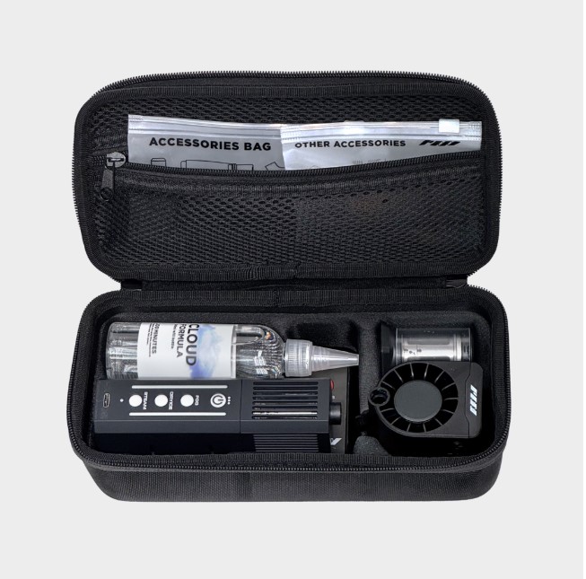 3. generácia hmlového dýzového nástavca sa môže pripojiť k SmokeNINJA-PRO cez Bluetooth a vytvárať efektívnu, tichú a ďalekonosnú hmlu. Dostatočne silný na to, aby zahmlil štúdio s rozlohou 93 štvorcových metrov v jednom výbuchu.