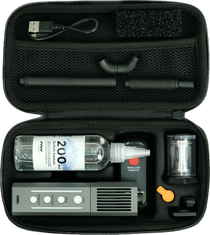 SmokeNINJA obsahuje tri najobľúbenejšie formy dymových efektov pre tvorcov: Hmla, suchý ľad a para. Je vybavená špeciálnymi tryskami, ktoré zaisťujú najlepšiu textúru pre každý efekt:
