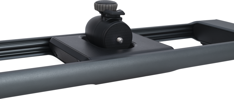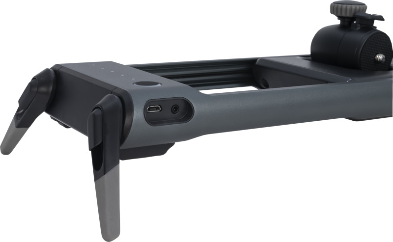 ROV obsahuje integrovanú rýchloupínaciu guľovú hlavu, ktorá vám umožní nastaviť slider a kameru v priebehu niekoľkých sekúnd. Vstavané nožičky vám umožňujú umiestniť slider kdekoľvek bez potreby statívu.