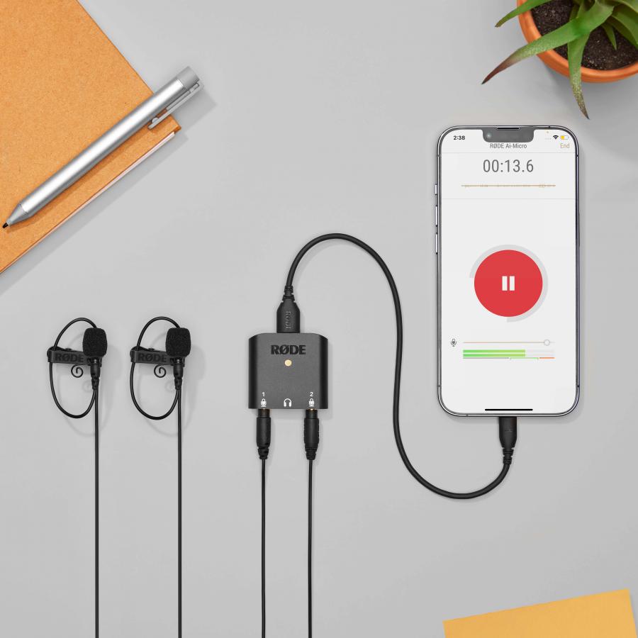 AI-Micro je ultrakompaktné dvojkanálové rozhranie na nahrávanie vysokokvalitného zvuku do mobilného zariadenia alebo počítača. Vďaka dvom vstupom s automatickým snímaním na pripojenie prakticky akéhokoľvek mikrofónu s 3,5 mm výstupom, monitorovaním slúchadiel, univerzálnym USB výstupom pre použitie so smartfónmi, tabletmi a počítačmi a kompatibilitou s aplikáciami RODE pre preplňovaný zvuk vám AI-Micro umožňuje nahrávať bez obmedzení.