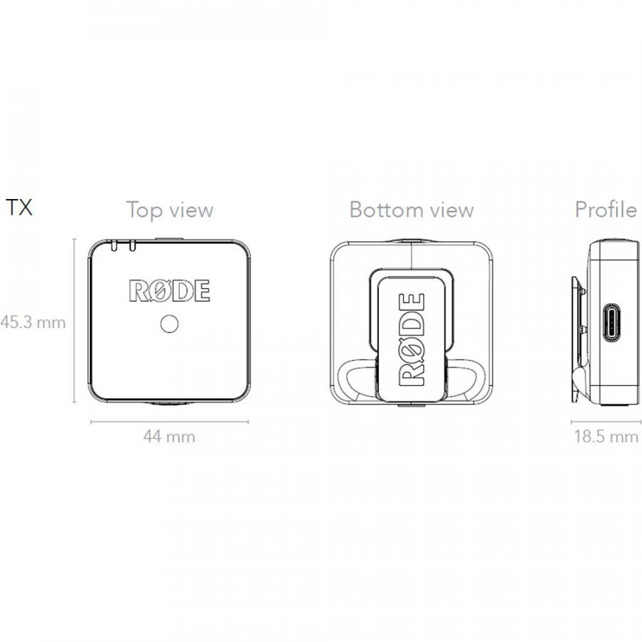 Vysielač (TX) meria iba 44 x 45,3 x 18,5 mm a váži len 29 g. Vďaka zabudovanej všesmerovej kondenzátorovej kapsuly ho možno použiť buď ako klopový mikrofón, alebo ako miniatúrny bodypack pre lavalier mikrofóny s 3,5 mm TRS konektorom. Vďaka tejto dvojitej funkcii je Wireless GO bezkonkurenčná, pokiaľ ide o flexibilitu a univerzálnosť.