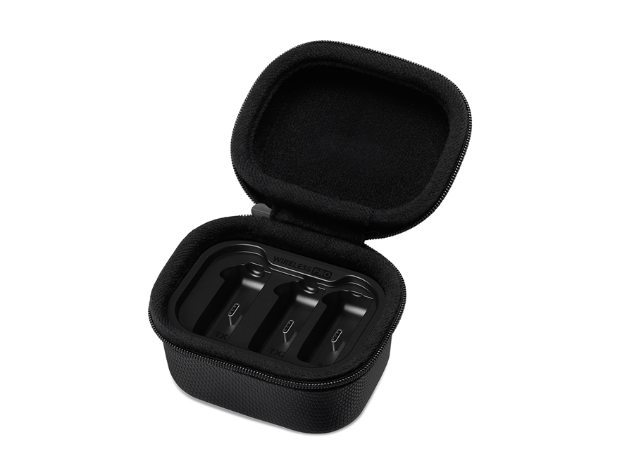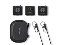 súčasťou kompletná sada príslušenstva - chytré nabíjacie puzdro, puzdro na príslušenstvo, dva klopové mikrofóny Lavalier IIs príslušenstvom, sada káblov (SC2, SC21, SC22, SC34), dva magnetické montážne klipy MagClip GO a tri protiveterné ochrany z umelej kožušiny