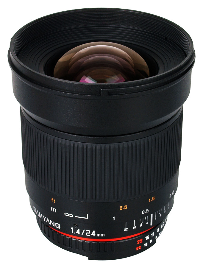 Samyang 24mm f/1.4 ED AS IF UMC je širokouhlý vysoko svetelný objektív optimalizovaný pre fotografovanie krajiniek, reportáže, street fotografie ako aj architektúry. Je určený pre použitie na Full Frame a APS-C digitálnych a klasických jednookých zrkadlovkách. Pri použití s Full Frame zrkadlovkami umožňuje objektív odfotografovať scénu s krásne širokouhlým 84° uhlom záberu, ktorý vám výborne poslúži nielen v uzavretých malých priestoroch, ale aj na úchvatné širokouhlé fotografie krajiny a architektúry. Pri nasadení na APS-C zrkadlovky vám poskytne objektív štandardný široký záber až 61,1° pri 36mm klasickej ohniskovej vzdialenosti po prepočte na kinofilm (1,5x crop faktor). Objektív má bajonetovú špeciálne tvarovanú (tzv. vykrajovanú) slnečnú clonu pre zabránenie vyniknutiu bočného svetla ktoré by mohlo zhoršiť výslednú obrazovú kvalitu.