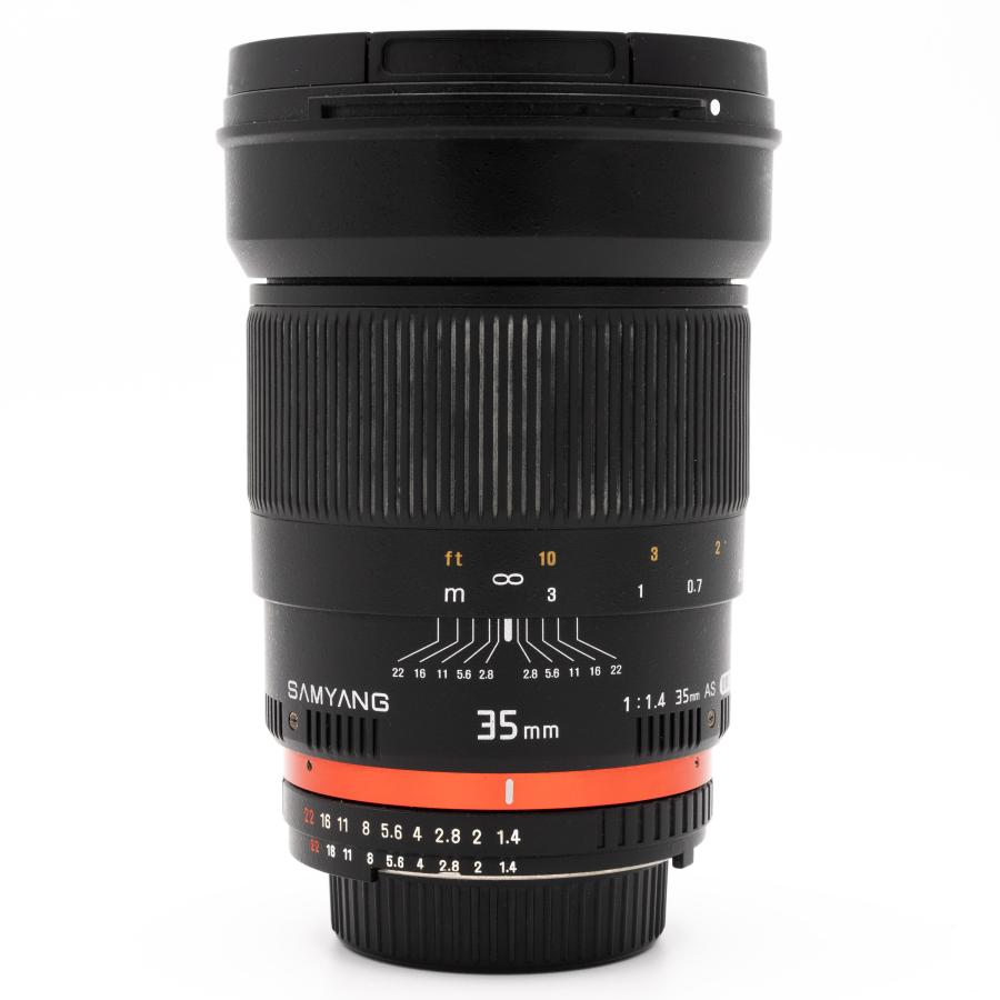 Samyang 35mm f/1.4 AS UMC je širokouhlý vysoko svetelný objektív optimalizovaný pre fotografovanie krajiniek, reportáže, street ako aj architektúry. Je určený pre použitie na Full Frame a APS-C digitálnych a klasických jednookých zrkadlovkách. Pri použití s Full Frame zrkadlovkami umožňuje objektív odfotografovať scénu s širokouhlým 63,4° uhlom záberu, ktorý vám výborne poslúži nielen v uzavretých malých priestoroch, na street fotografiu, ale aj na širokouhlé fotografie krajiny a architektúry. Pri nasadení na APS-C zrkadlovky vám poskytne objektív univerzálny štandardný uhol záberu 42,5° pri 52,5mm klasickej ohniskovej vzdialenosti po prepočte na kinofilm (1,5x crop faktor). Objektív má bajonetovú špeciálne tvarovanú (tzv. vykrajovanú) slnečnú clonu pre zabránenie vyniknutiu bočného svetla ktoré by mohlo zhoršiť výslednú obrazovú kvalitu.