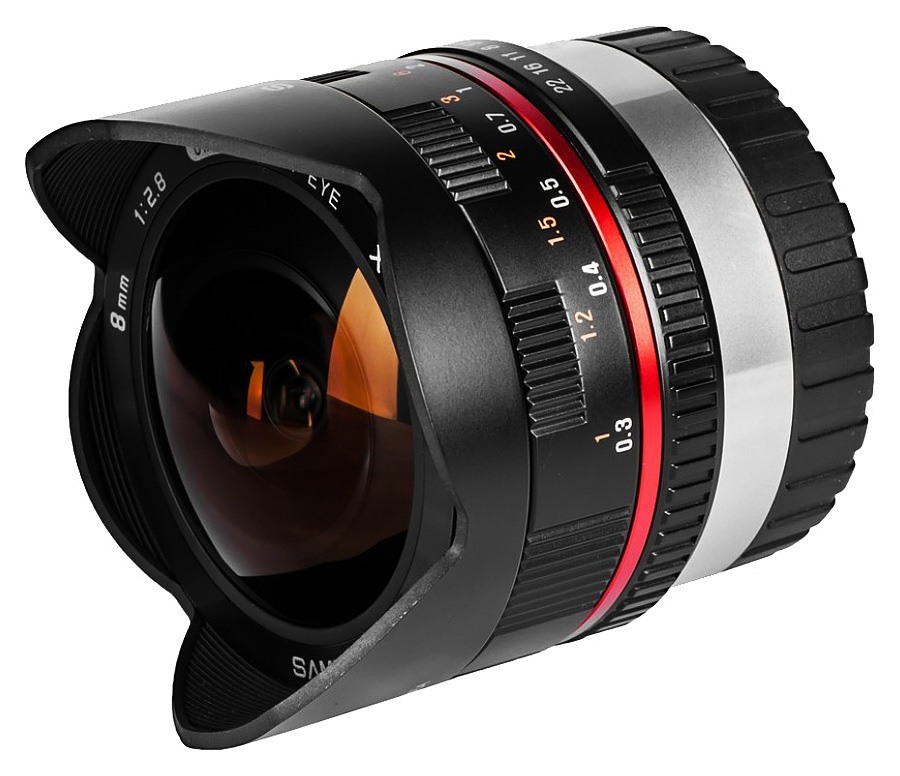 Samyang 8mm f/2.8 UMC Fisheye je objektív typu rybie oko s výborným pomerom obrazová kvalita/cena. Je to manuálny objektív, kde si zaostrovanie a clonu riadite ručne priamo na tubuse objektívu. Objektív samotný je určený pre použitie s APS-C systémovými digitálnymi fotoaparátmi (CSC) Fujifilm rady X so senzorom formátu APS-C (corp. faktor 1,5x). Objektív ponúka skvelý zorný uhol pokrývajúci až 180° šírku záberu vďaka čomu ponúka nespočetne veľa možností pre kreatívne uplatnenie sa. Optická sústava pozostáva z 10-tich šošoviek zoradených do 8 skupín, kde dve šošovky sú zo špeciálneho nízko rozptylového ED skla a jedna z šošovka je asfétricky tvarovaná pre odladenie skreslenia a potlačenie chromatickej aberácie. Optická sústava využíva najnovšiu generáciu antireflexných vrstiev UMC – Ultra Multi Coated, ktoré pomáhajú výrazne obmedzovať vznik nežiaducich farebných odleskov a tzv. duchov. Vďaka vnútornému zaostrovaciemu systému pohybujúcemu sa iba vo vnútri tubusu objektívu sa nemení veľkosť objektívu a neotáča sa ani predný optický člen. 180° uhol záberu objektívu vám výborne poslúži nielen v uzavretých malých priestoroch, ale aj na úchvatné širokouhlé fotografie krajiny a architektúry. Pri nasadení na APS-C systémové digitálne fotoaparáty (CSC) Fujifilm rady X vám objektív poskytne 12mm ohniskovú vzdialenosť po prepočte na kinofilm (1,5x crop faktor).
