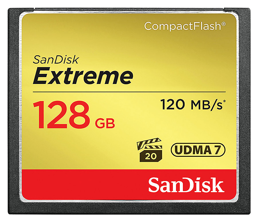 Sandisk CF Extreme 128GB (VPG 20, UDMA 7) - R: 120 MB/s, W: 85 MB/s