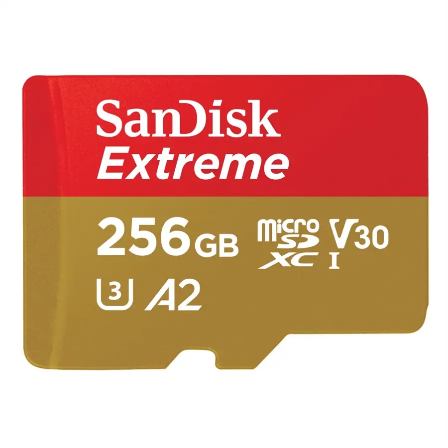 - SanDisk Extreme microSDXC 256GB 190 MB/s A2 C10 V30 UHS-I U3, adaptér