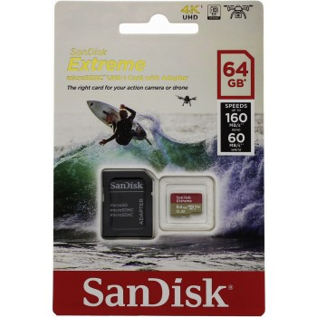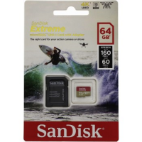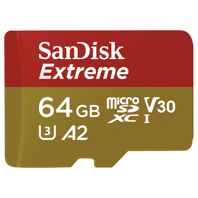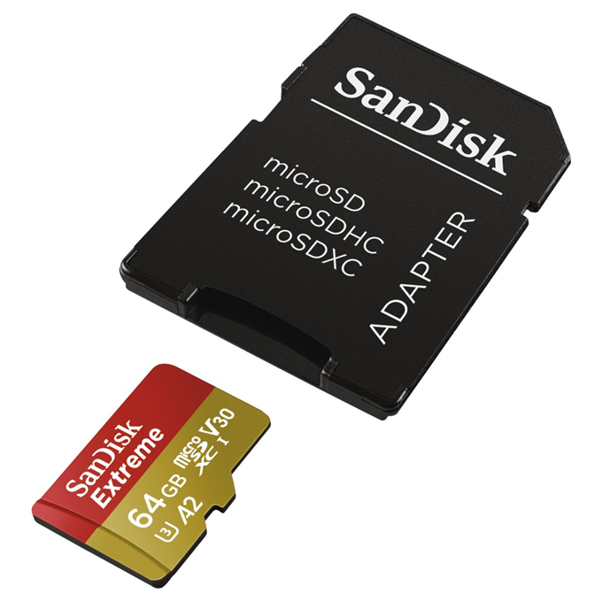 - SanDisk Extreme microSDXC 64GB 160 MB/s A2 C10 V30 UHS-I U3, adaptér
