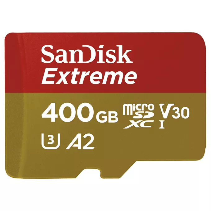 - SanDisk microSDXC Extreme 400GB 160 MB/s A2 C10 V30 UHS-I U3, adaptér