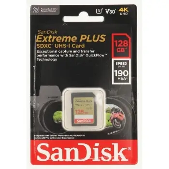SanDisk SDHC Extreme PLUS 128GB Class 10, UHS-I U3 V30, R: 190 MB/s, W: 90 MB/s