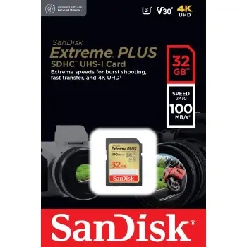 SanDisk SDHC Extreme PLUS 32GB Class 10, UHS-I U3 V30, R: 100 MB/s, W: 60 MB/s