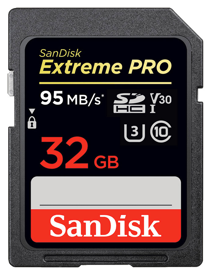 - SanDisk SDHC Extreme PRO 32GB Class 10, UHS-I U3 V30 - R: 95MB/s, W: 90MB/s