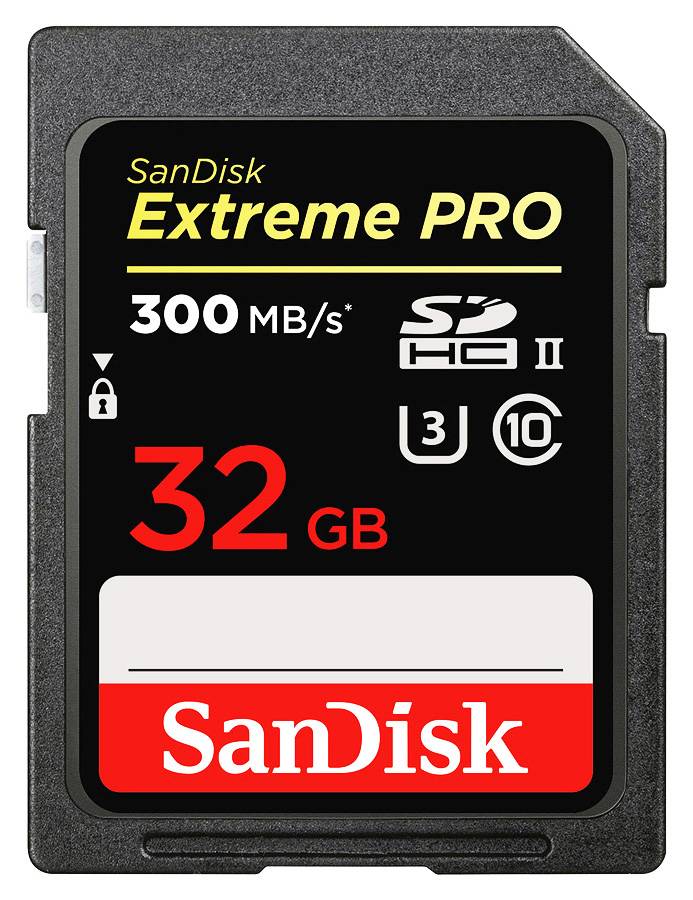 - SanDisk SDHC Extreme PRO 32GB Class 10 UHS-II U3, R: 300MB/s, W: 280MB/s
