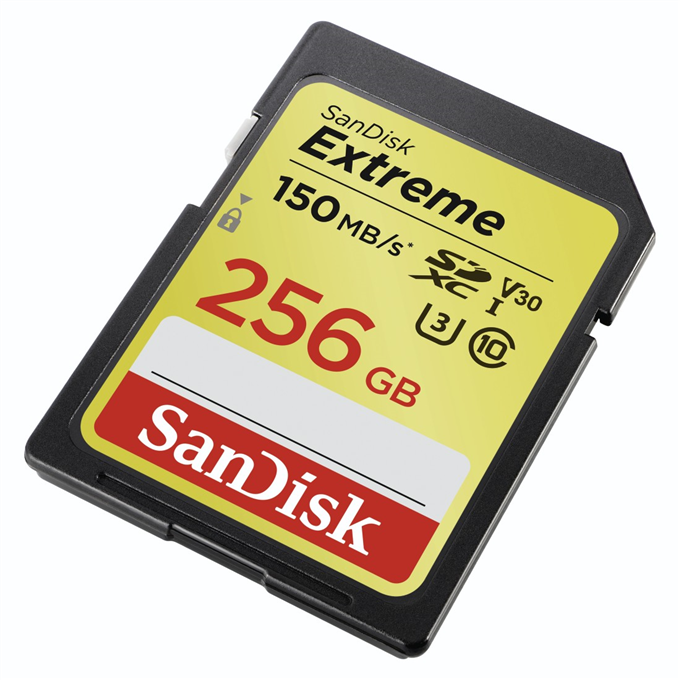 - SanDisk SDXC Extreme 256GB Class 10, UHS-I U3 V30, R: 150MB/s, W: 60MB/s