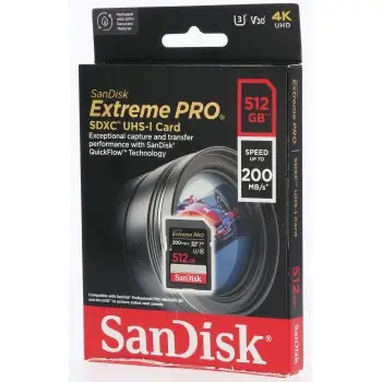 - SanDisk SDXC Extreme PRO 512GB Class 10, UHS-I U3 V30, R: 200MB/s, W: 140MB/s