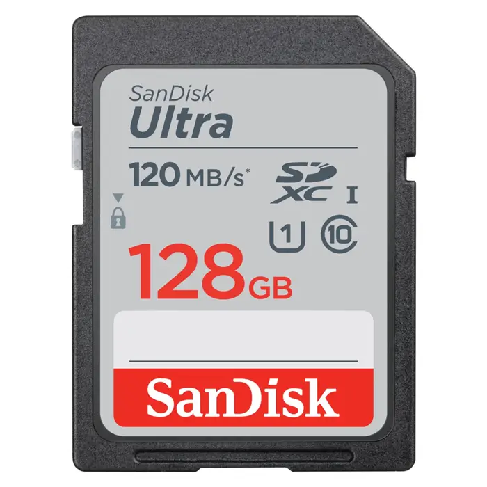 - SanDisk SDXC Ultra 128GB Class 10, UHS-I U1, R: 120MB/s