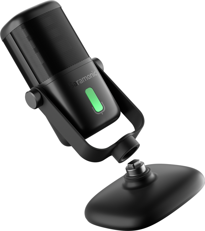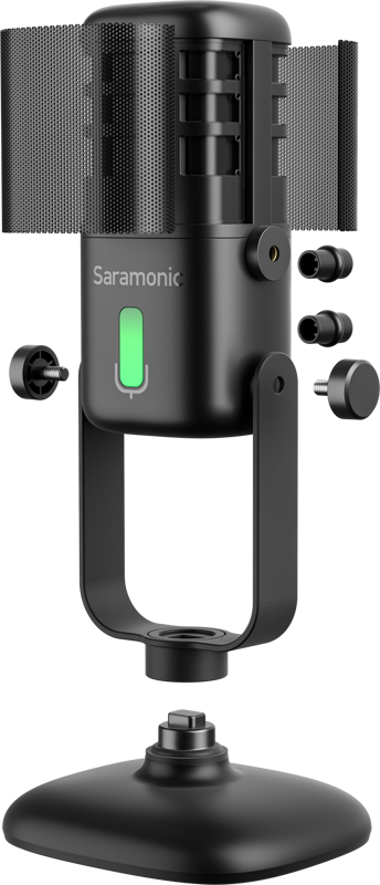 Saramonic SR-MV2000 je stolní USB mikrofon, který poskytuje profesionální kvalitu zvuku. Interaktivní design indikátoru vyzve uživatele k zadání zvuku v reálném čase během nahrávání, aby byla zajištěna optimální kvalita zvuku. Tento mikrofon je vybaven technologií plug-and-play s multifunkčními tlačítky (nastavení zesílení/gain, funkce ztlumení zvuku, monitorování zvuku v reálném čase), které jsou umístěné na mikrofonu pro nahrávání jednoho nebo více reproduktorů.