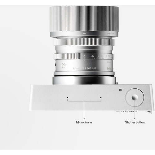 Sigma BF je intuitívny fotoaparát s minimom fyzických ovládacích prvkov. Táto bezzrkadlovka sa pýši progresívnym dizajnom, ktorý sústreďuje väčšinu ovládania do iba troch tlačidiel: voliča, spúšte a tlačidla napájania. Každý kus je vyrobený z jediného bloku hliníka, čo prináša vyvážené a rovnomerné rozloženie hmotnosti. Úchop pre palec v pravom hornom rohu pridáva malý, ale zásadný ergonomický prvok na manipuláciu s fotoaparátom. SIGMA BF disponuje full frame snímačom a dokáže natáčať video v rozlíšení 6K.