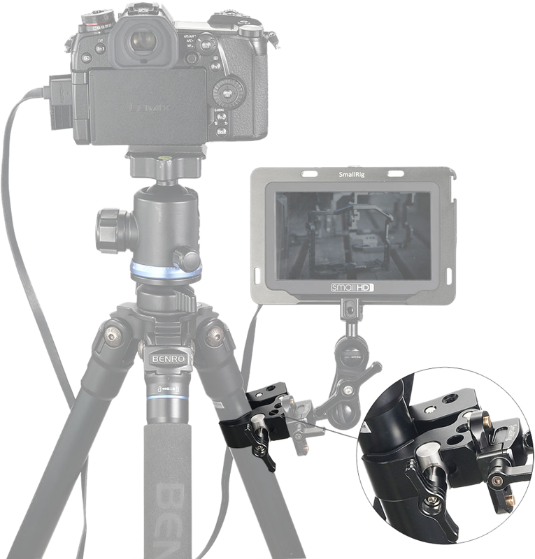 Pomocná univerzálna svorka na pripojenie k plochej podložke, alebo k podkladu kruhového (eliptického) prierezu. Svorka je vybavená niekoľkými závitmi 3/8, v balení je aj adaptér závitu 1/4 na 3/8. Na svorku je možné pripojiť rôzne príslušenstvo, ako napríklad ramená, adaptéry a držiaky pre svetlá, blesky a podobne.