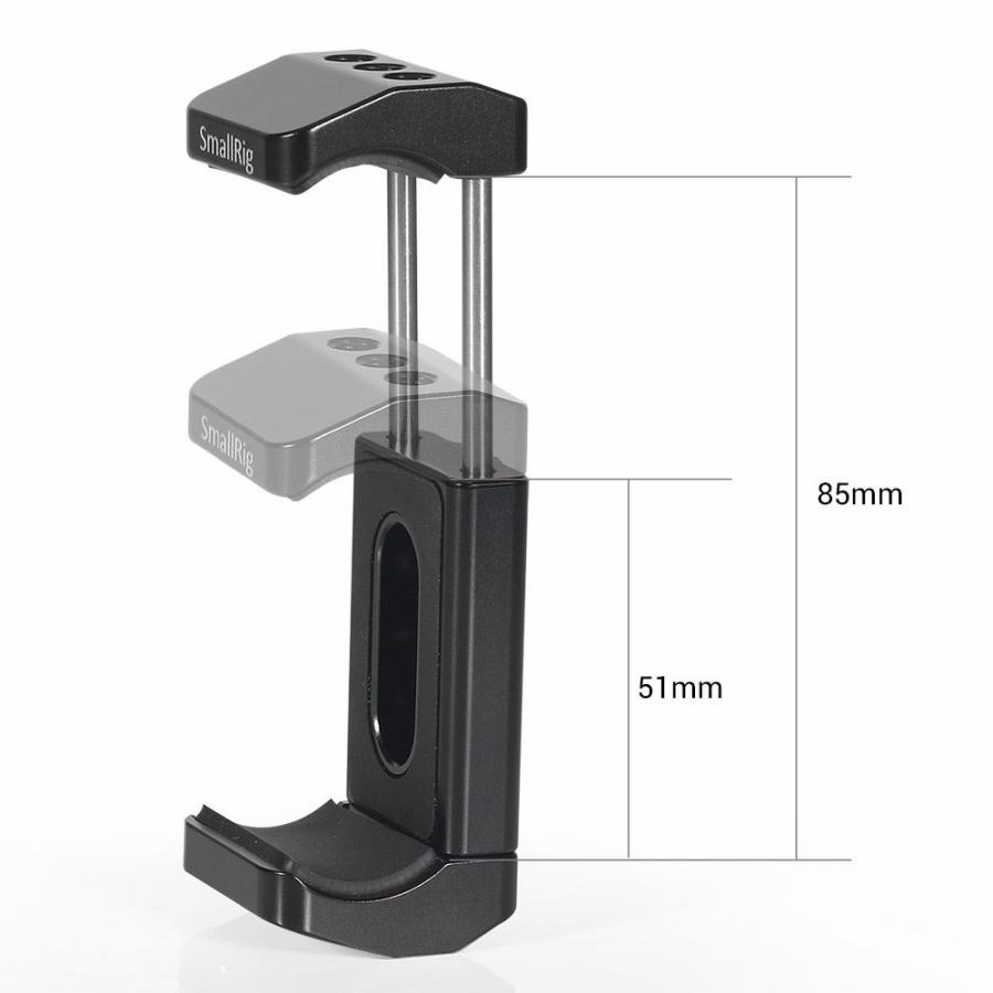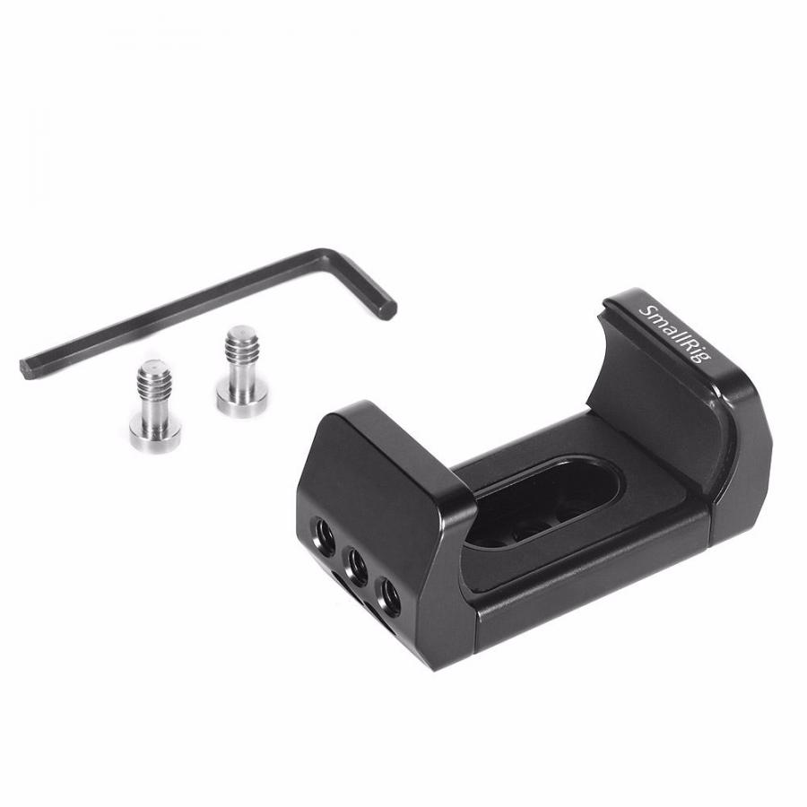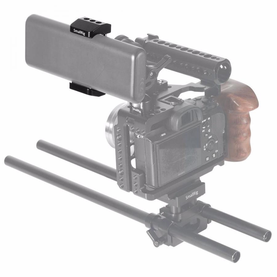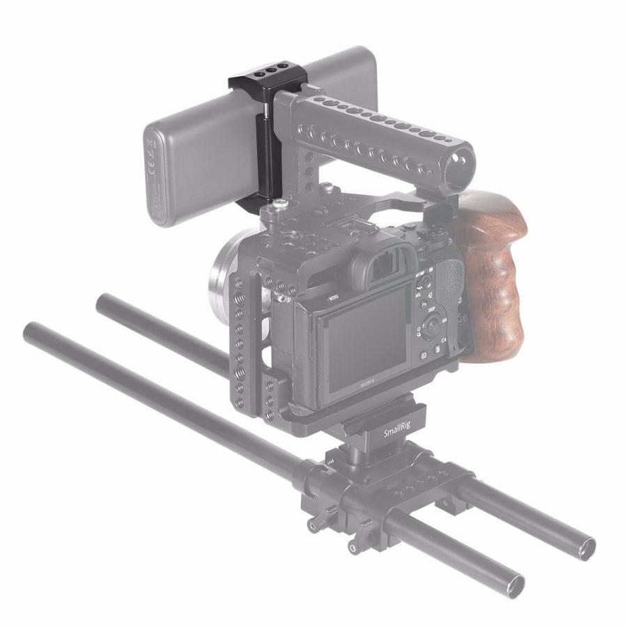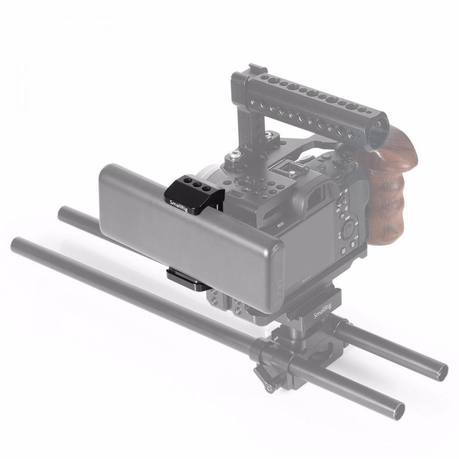 Na hornej, spodnej a zadnej strane držiaka sú otvory so závitom 1/4 "-20, čo uľahčuje pripevnenie držiaka na rôzne miesta. Napríklad ho môžete pripevniť na prednú časť horného držadla SmallRig 1638, SmallRig Dual Rod Clamp 942, SmallRig BallHead Arm 2070 alebo všetky klietky SmallRig.