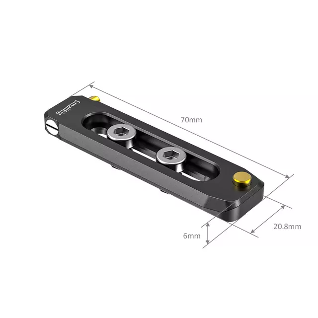 SmallRig Nízkoprofilová NATO koľajnica 70 mm BUN2483 je pripevnená k vášmu kamerovému stojanu pomocou dvoch skrutiek 1/4''-20. Je dlhý 70 mm, je kompatibilný s príslušenstvom NATO, ako sú svorky, rukoväte a držiaky monitorov, čo vám umožňuje rýchlo pripojiť a uvoľniť komponenty súpravy. Bezpečnostné kolíky na oboch koncoch zabraňujú náhodnému skĺznutiu príslušenstva.