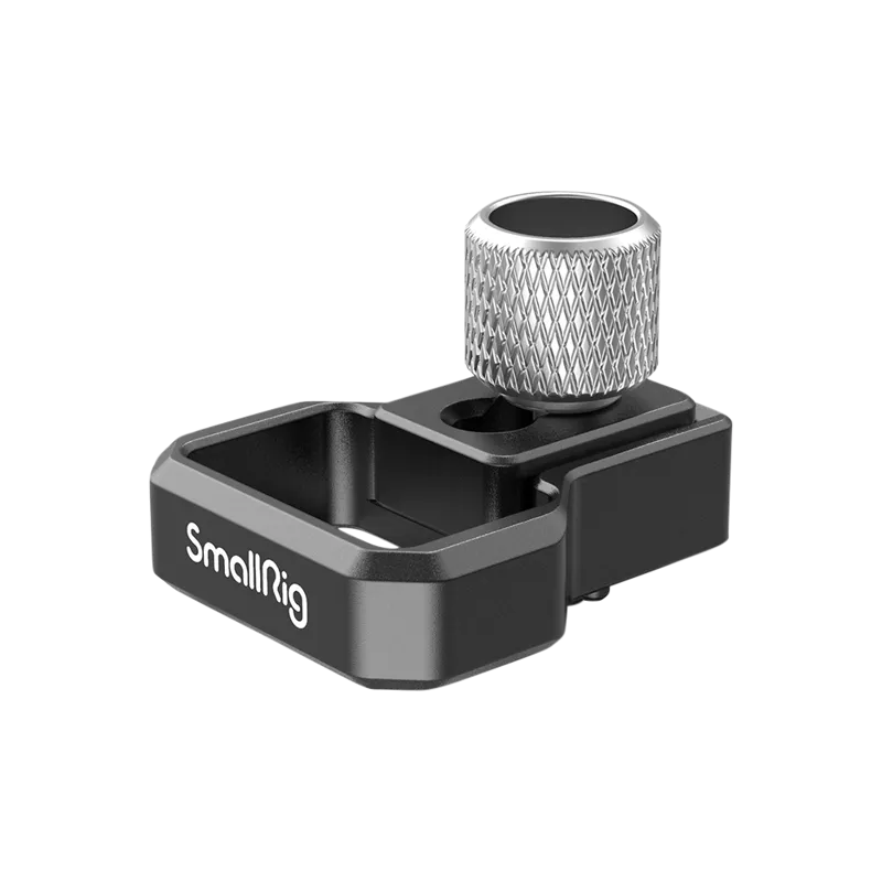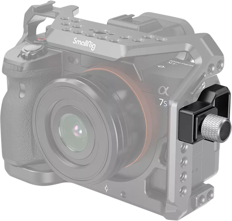 SmallRig HDMI Cable Clamp for A7S III Cage 3000 is compatible with SmallRig Cage 2999. Designed to prevent the camera's HDMI cable from accidentally disconnecting, this clamp attaches to the side of the cage using a 1/4"-20 screw and two anti-twist pins. The easy-to-grasp Knurled 1/4"-20 screw adjusts a sliding block that can be tightened to accommodate HDMI cable of varying diameters. This Cable Clamp is constructed of a sturdy aluminum alloy and comes with an Allen wrench.