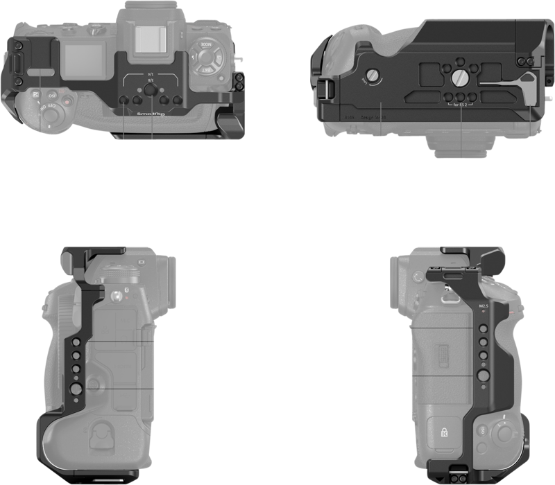 Kamerová klietka 3195 je vyrobená na mieru pre Nikon Z9, chráni kameru a ponúka možnosť pripojenia externého príslušenstva. Špeciálny dizajn konštrukcia s pohodlným bočným gripom. Kameru upevníte jednoducho pomocou 1/4 "skrutky v spodnej časti klietky. Príslušenstvo pripevníte vďaka 1/4" a 3/8 "závitom, ktoré sú rozmiestnené po celej konštrukcii klietky. Navyše tu nájdete" cold shoe "- sánky a NATO drážku na bočnej strane. Spodná časť klietky je v tvare Arca Swiss doštičky, takže ju môžete namontovať priamo na statív s Arca drážkou.